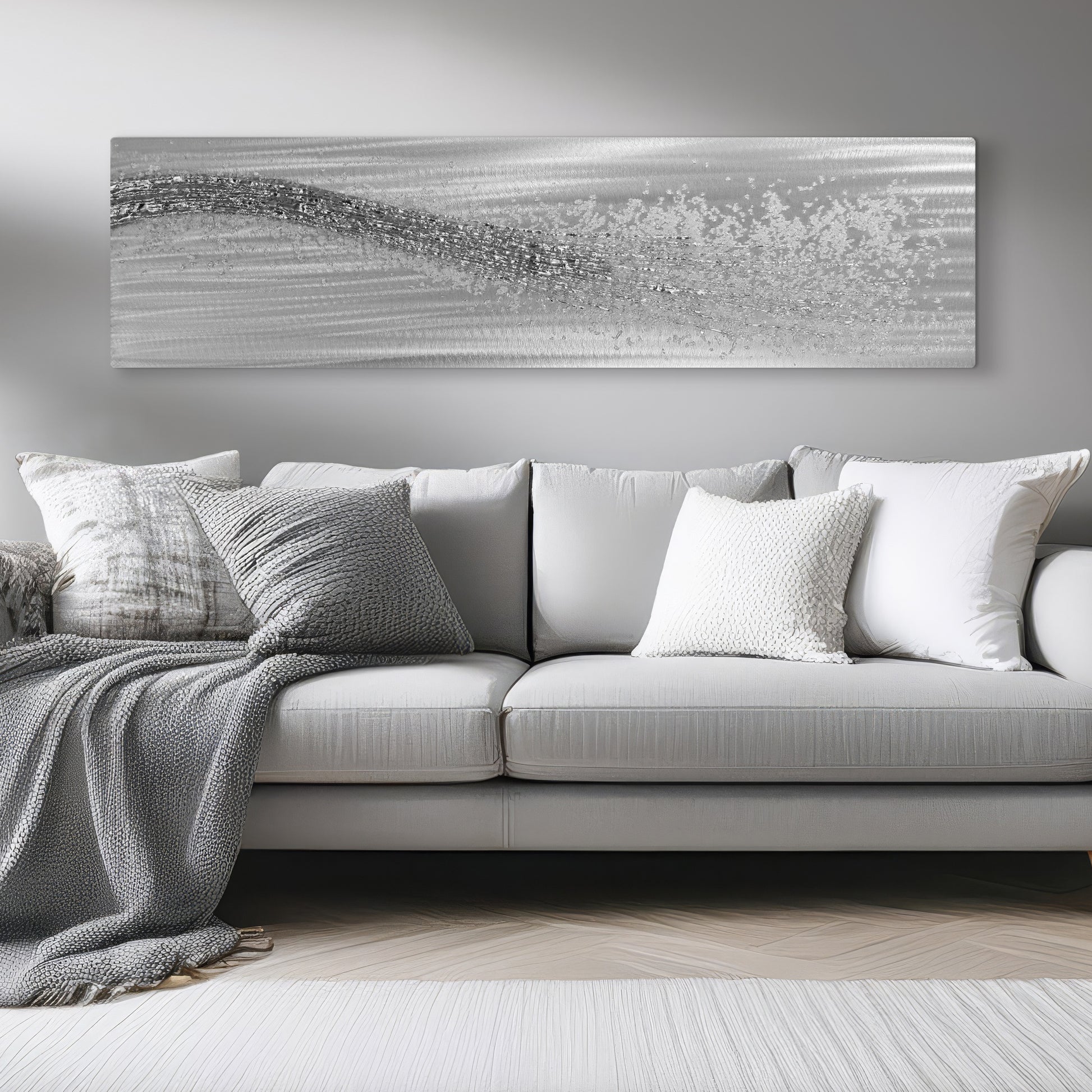 Our Alchemy Crystal Grey design looks stunning in any modern interior requiring a long format artwork.