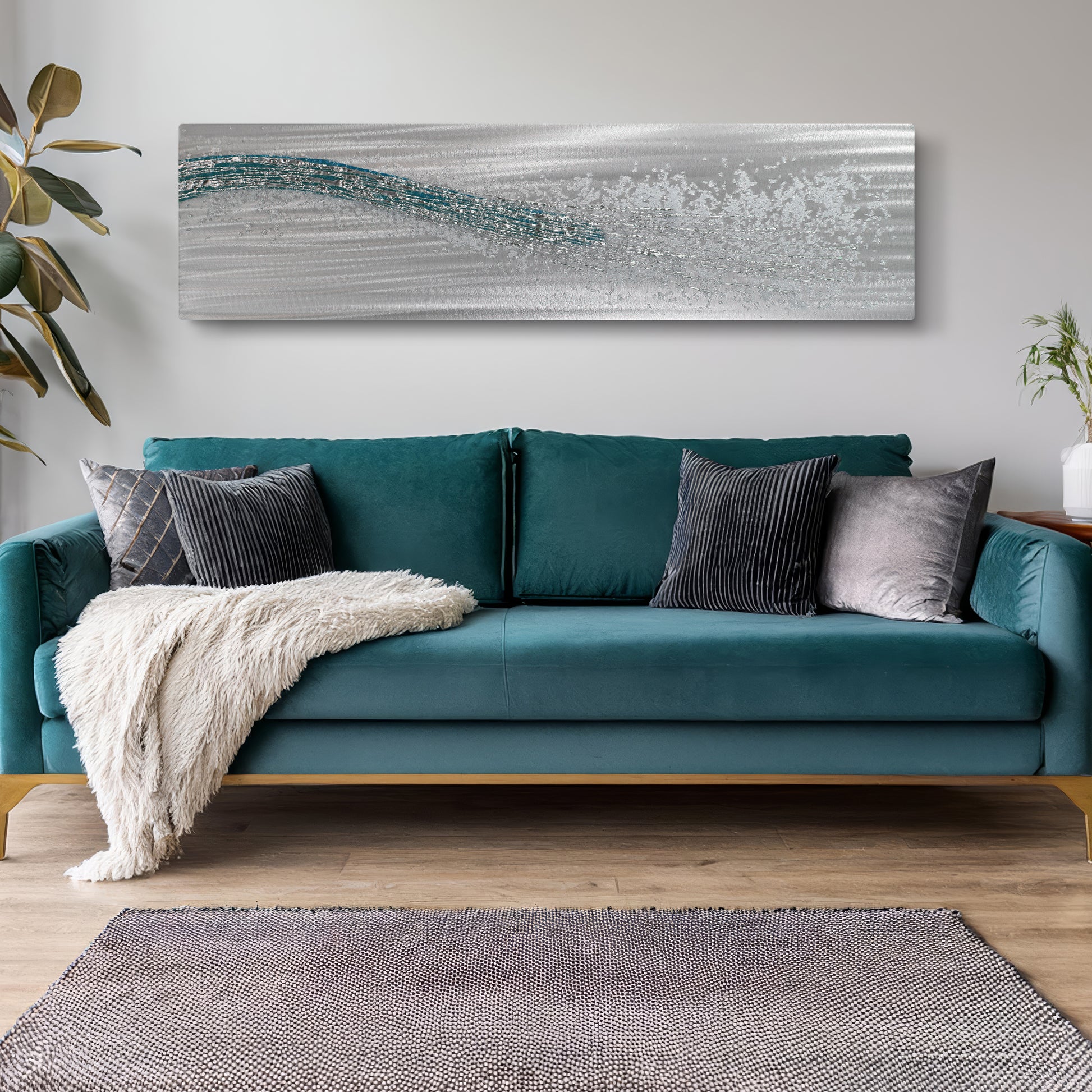 Our Alchemy Crystal Vardo Teal design looks stunning in any modern interior requiring a long format artwork.