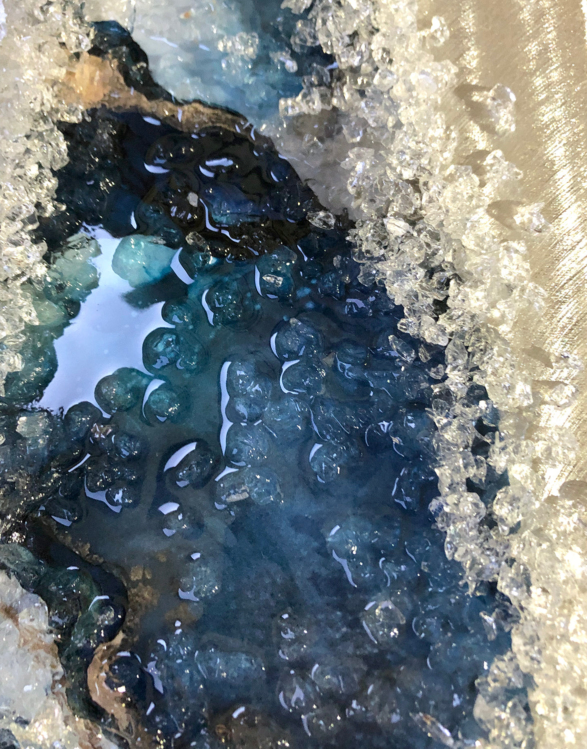 Set of 2 deep floated luxury aluminium artworks with marble effect, cast in resin and embelished with crystal crushed glass.