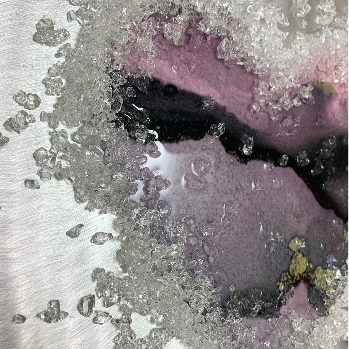 Set of 3 deep floated aluminium love hearts with marble effect, cast in resin and embelished with crystal crushed glass.