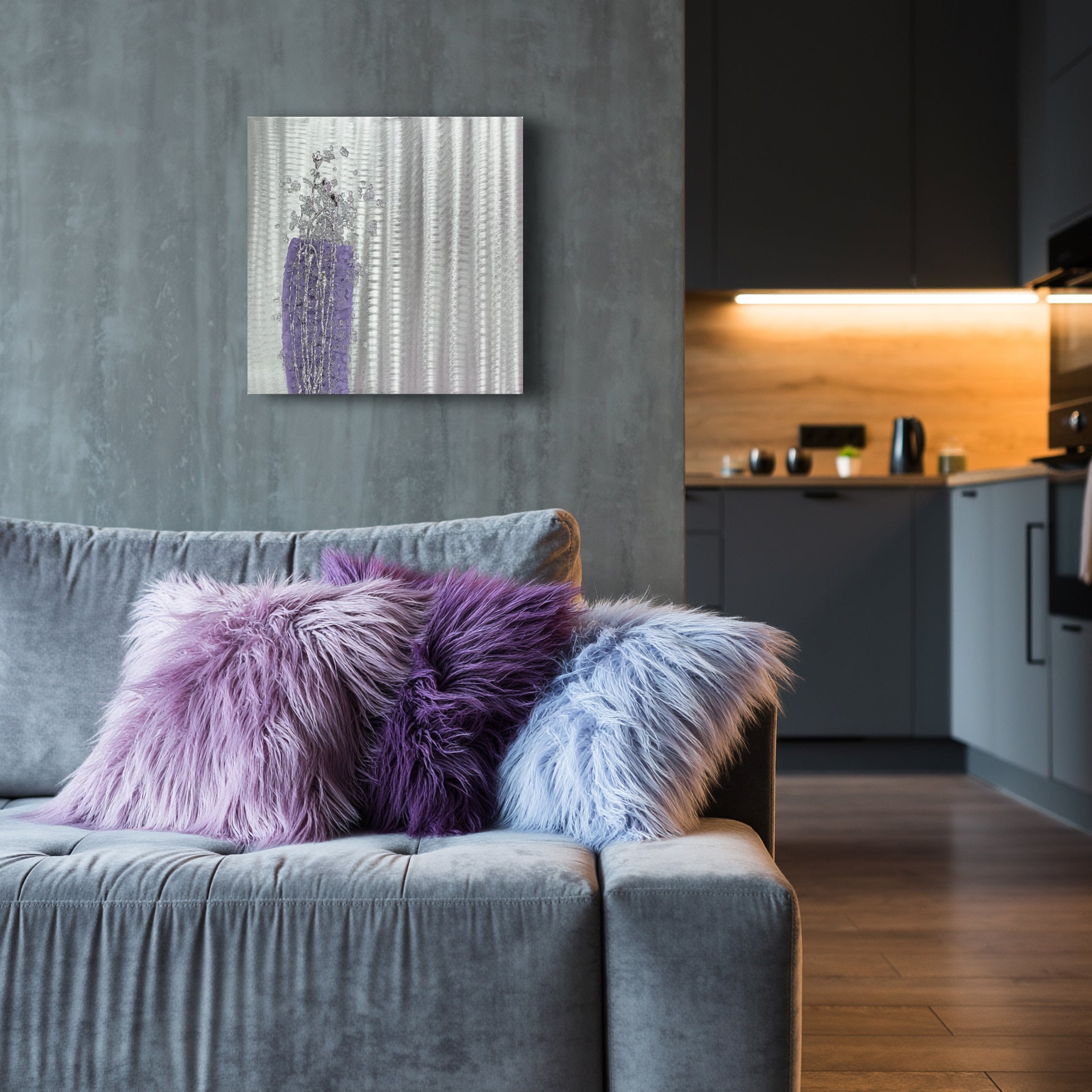A stunning aluminium artwork with crystal glass cluster and raised line ‘liquid metal’ effect embellishments. Suitable to hang as a stand alone piece or as a set with other colour pieces from our ‘Crystal Cluster’ collection.