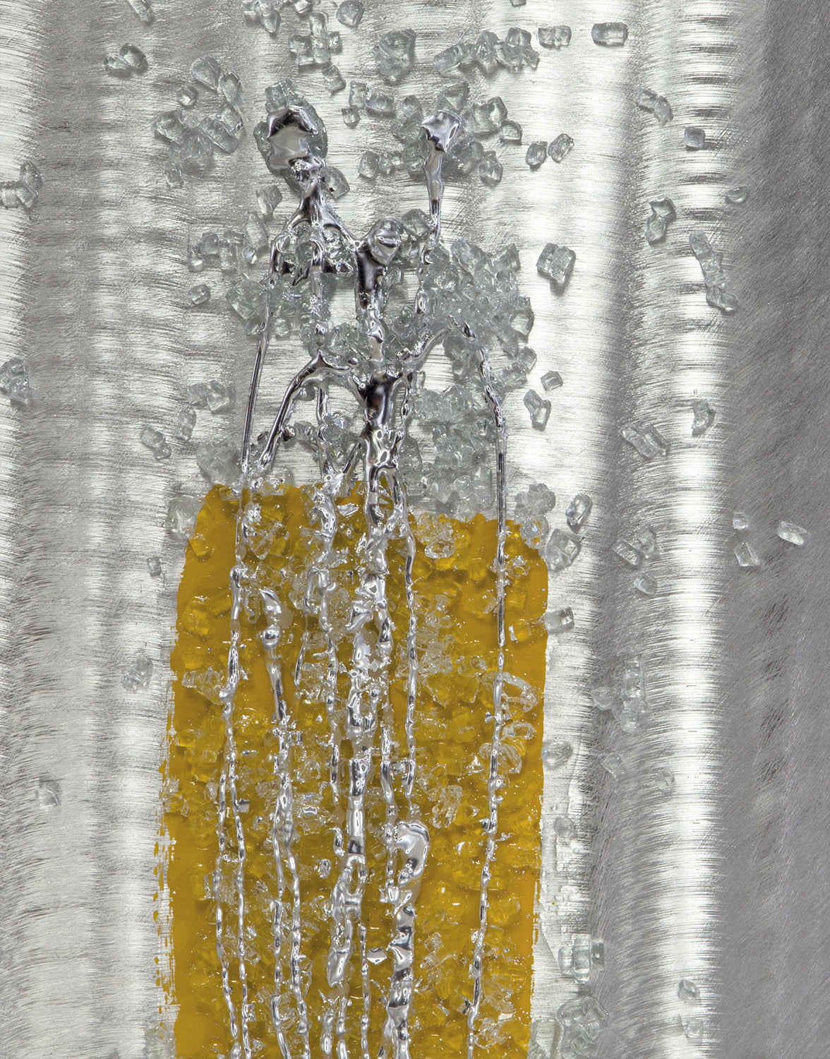 A stunning aluminium artwork with crystal glass cluster and raised line ‘liquid metal’ effect embellishments. Suitable to hang as a stand alone piece or as a set with other colour pieces from our ‘Crystal Cluster’ collection.