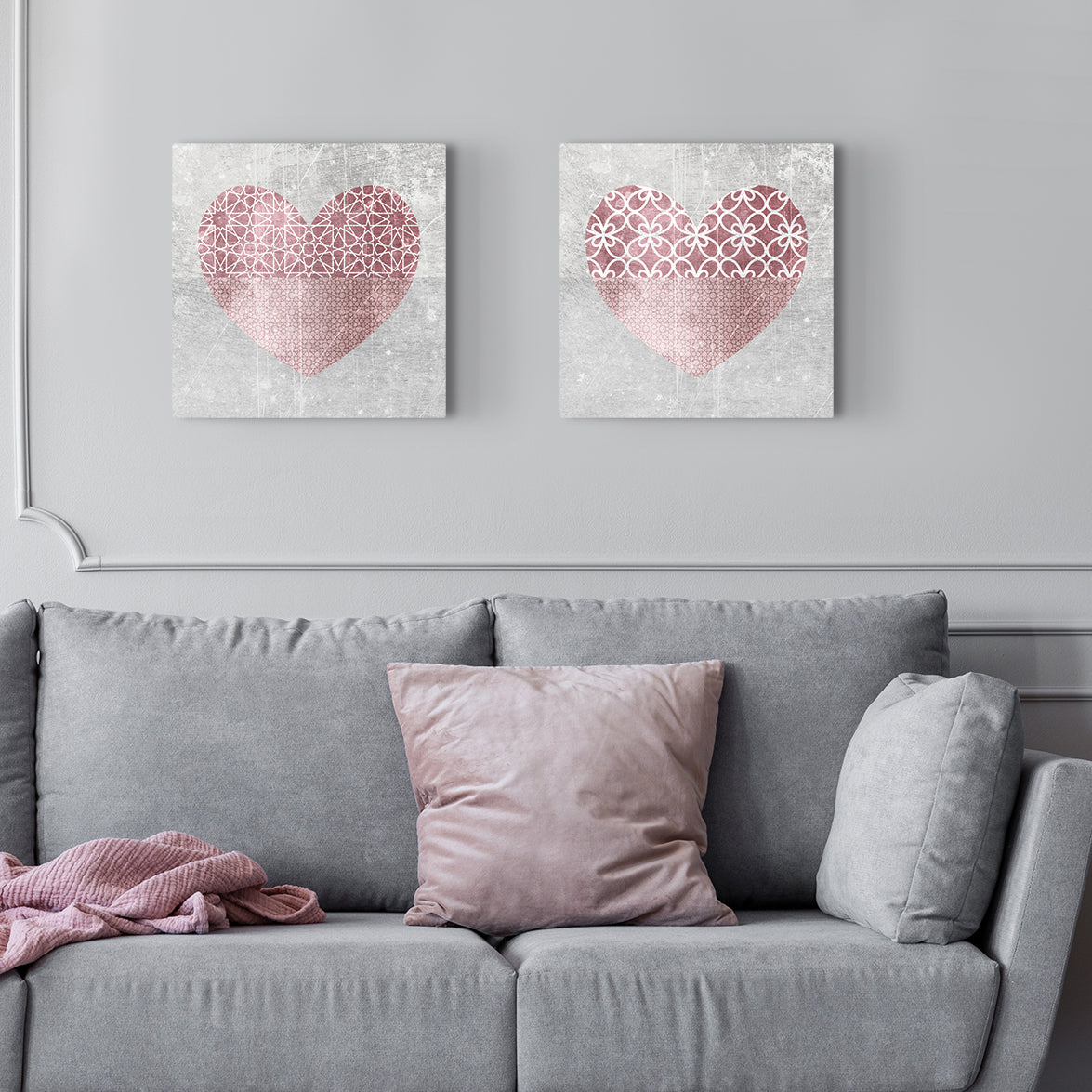 Set of Two Canvases ‘Dusky Blush Hearts’