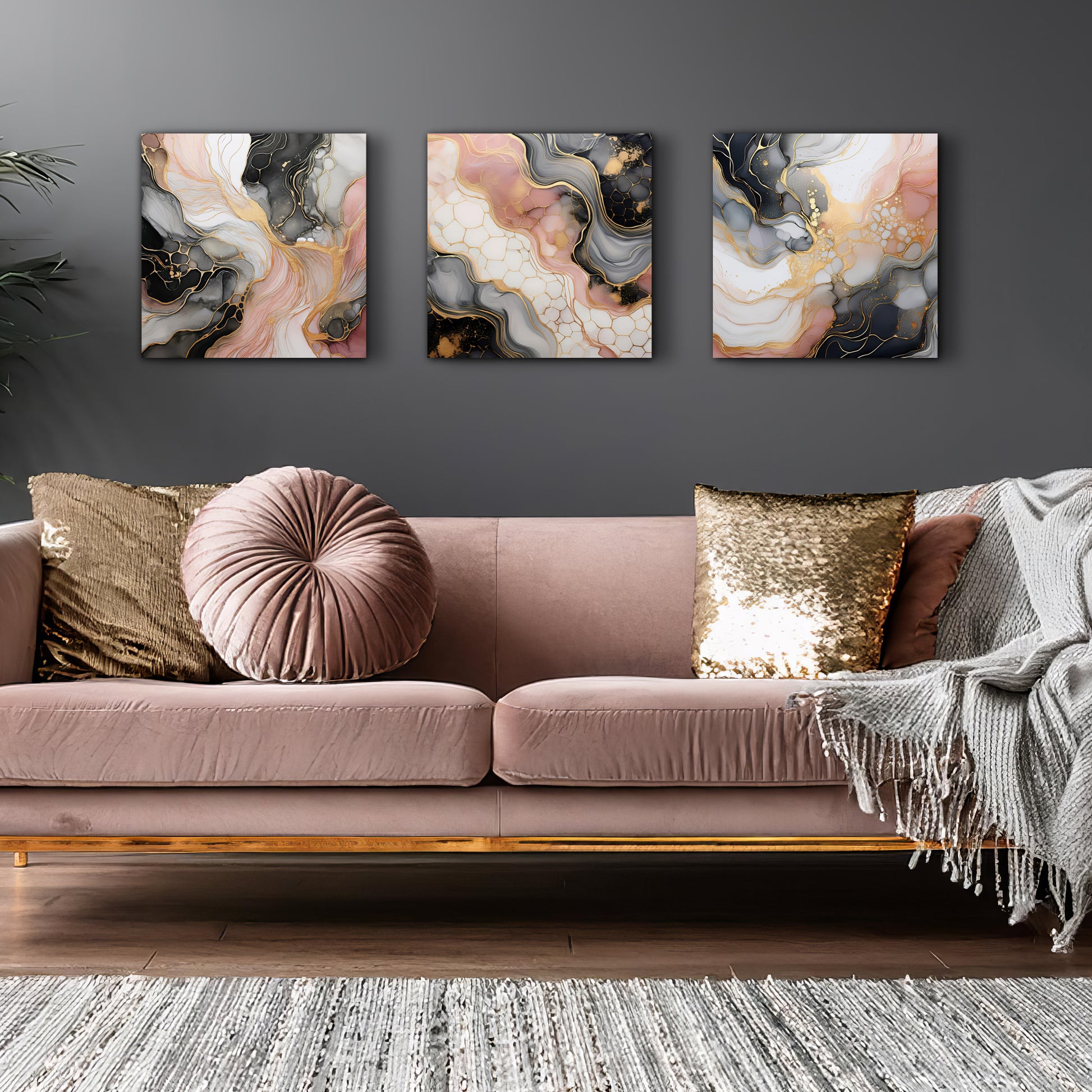 Set of Three Canvases ‘Marble Lux Blush’