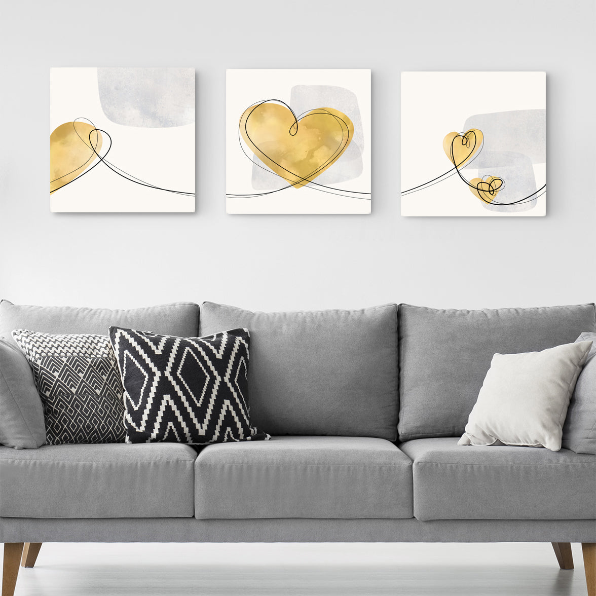 Set of Three Canvases ‘Mustard Heart Trio’