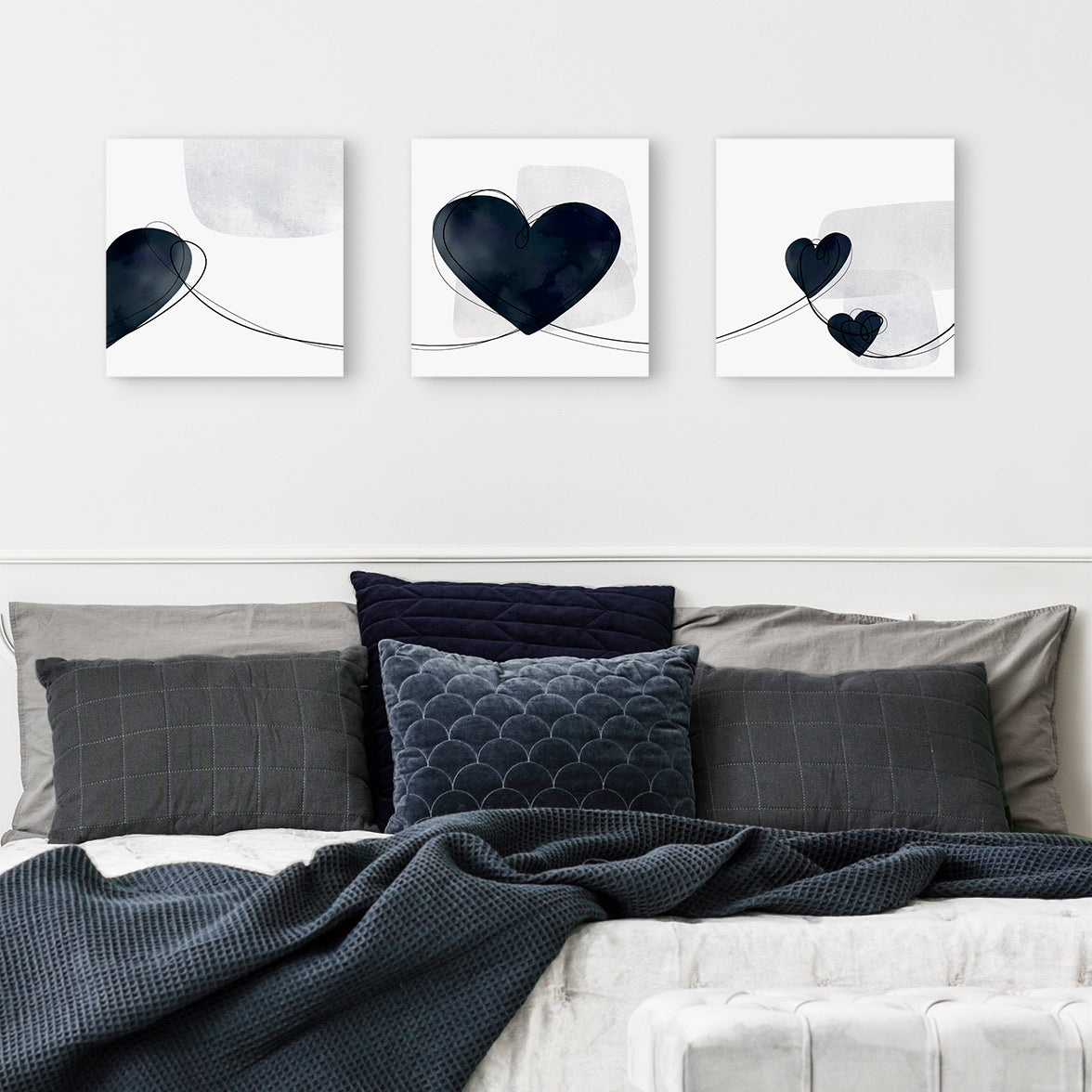 These beautifully balanced hearts with sumptuous shades of grey and a pop of deep navy blue will make a perfect companion to any interior utilising neutral grey tones and dark blue accents.