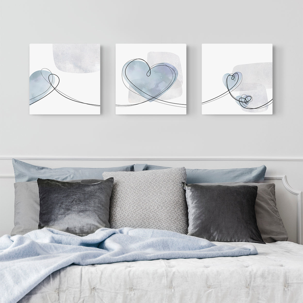 These beautifully balanced hearts with sumptuous shades of grey and a pop of sky blue blue will make a perfect companion to any interior utilising neutral grey tones and light blue accents.