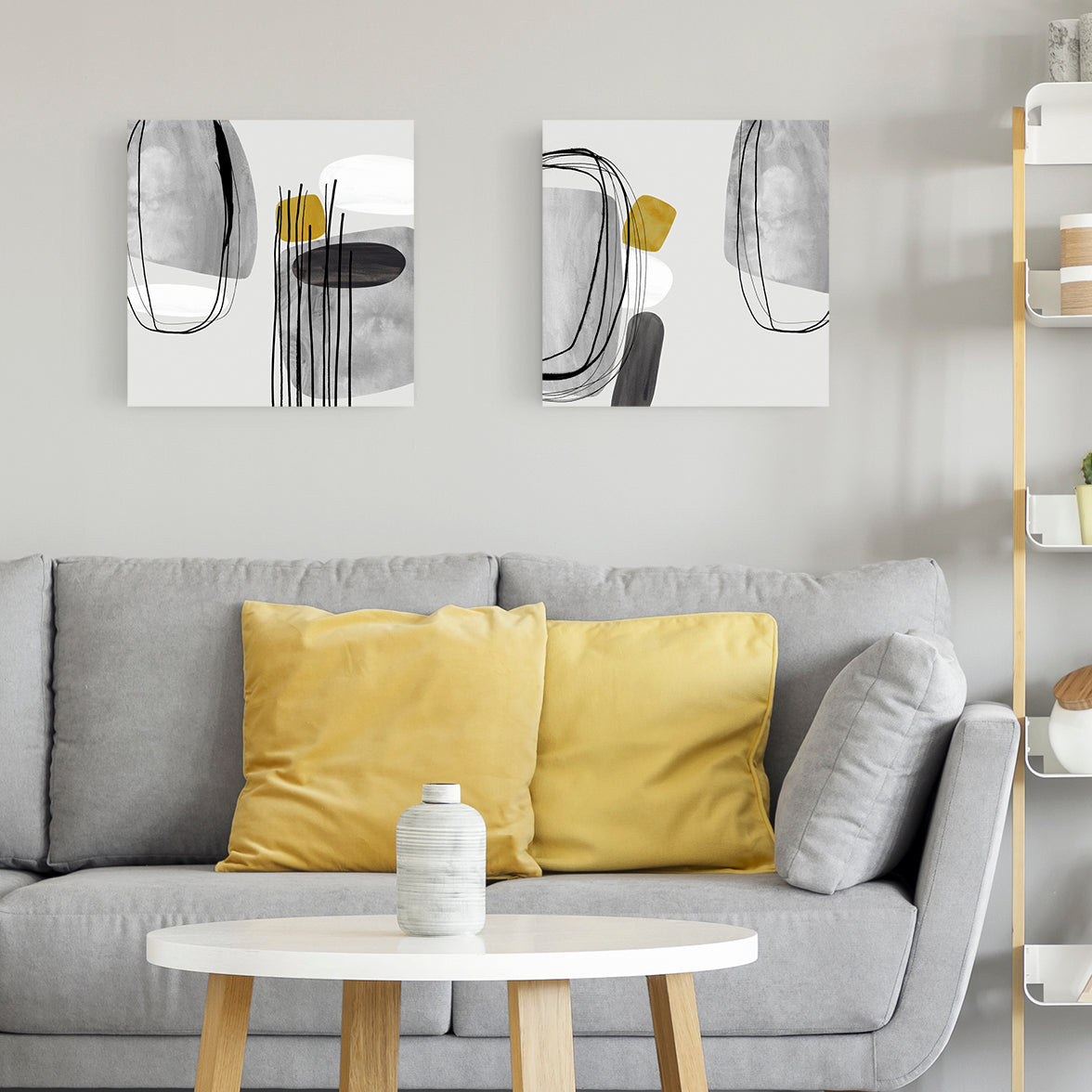 This contemporary design duo, with sumptuous shades of grey and a pop of mustard yellow will make a perfect companion to any interior utilising neutral grey tones and ochre or mustard yellow accents.