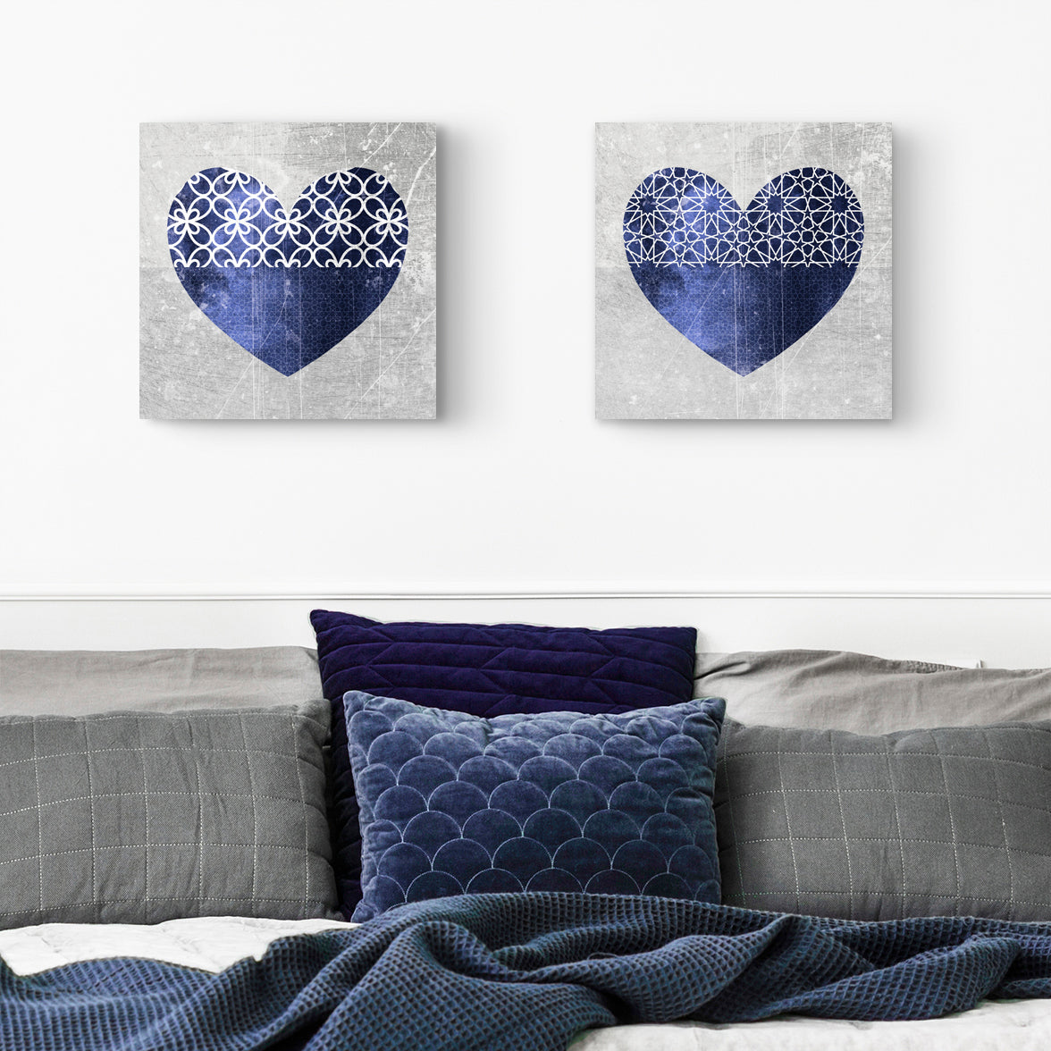 These beautifully balanced hearts with sumptuous shades of grey and a pop of deep navy blue will make a perfect companion to any interior utilising neutral grey tones and dark blue accents.