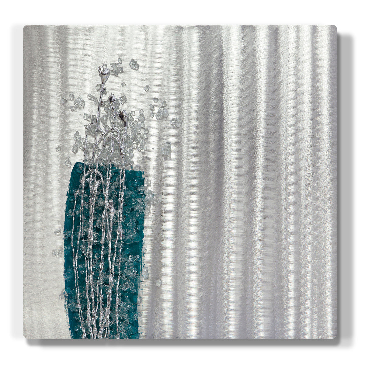 A stunning aluminium artwork with crystal glass cluster and raised line ‘liquid metal’ effect embellishments. Suitable to hang as a stand alone piece or as a set with other colour pieces from our ‘Crystal Cluster’ collection.